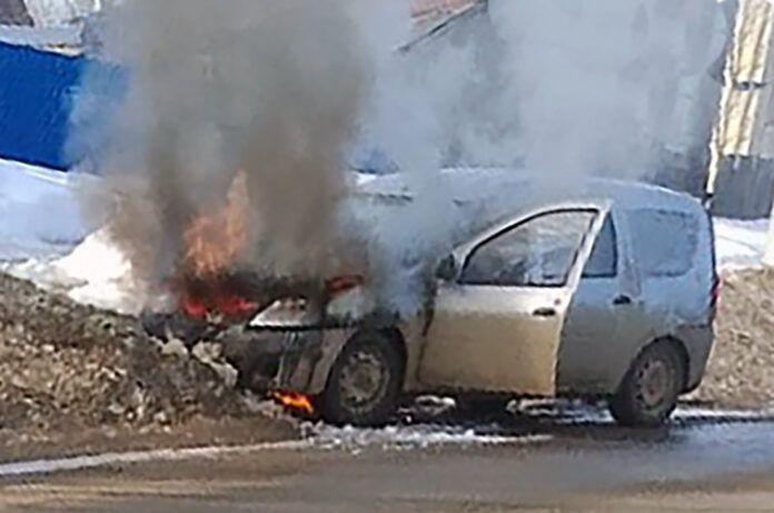 31 марта в 11 часов утра в полицию поступило сообщение о возгорании автомашины Лада-Ларгус в посёлке Майкор Юсьвинского МО, на улице Ленина.