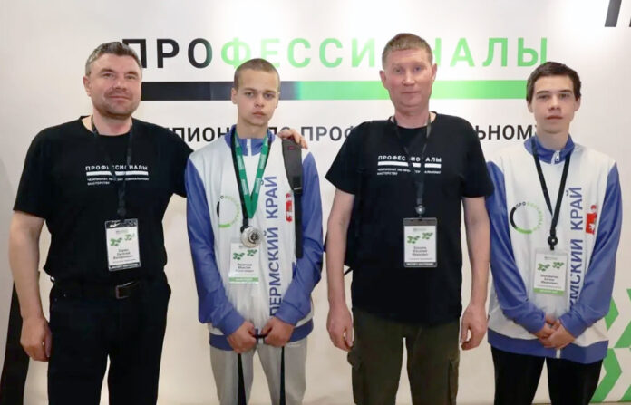 С 22 по 26 апреля делегация Пермского края участвовала в итоговом всероссийском этапе чемпионата по профессиональному мастерству «Профессионалы», по компетенциям: «Управление форвардером» и «Управление харвестером» в городе Советский Ханты-Мансийского автономного округа. Студент Кудымкарского лесотехникума Максим Леонтьев (на фото – второй слева) занял второе место.